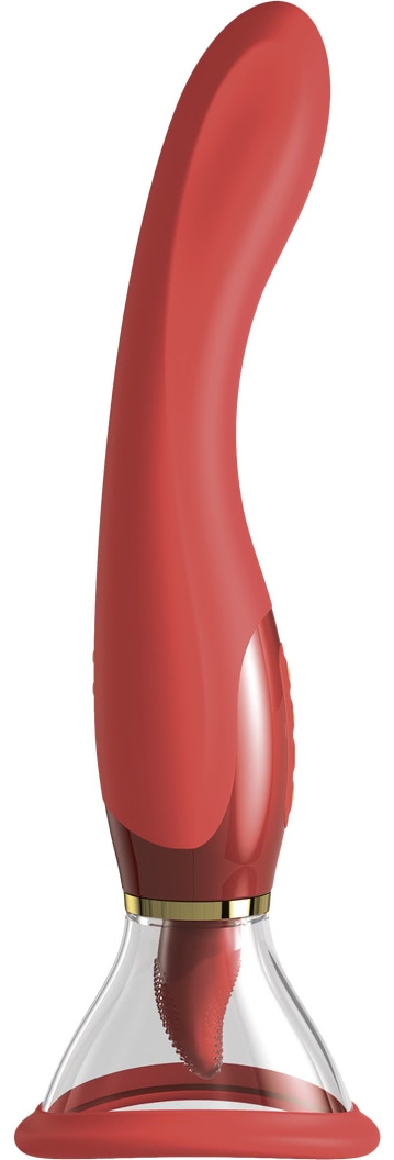 Intensificatorul de sucțiune cu două atașamente personalizabile pentru zonele erogene, dând opțiuni rotunde și ovale pentru stârnirea maximă. Patru motoare pătrunzătoare care generează trei modele de aspirație, șapte modele de mișcare a limbii și zece tipuri de vibrații, permit alegerea satisfacerii prin surescitarea limbii, vibrații și aspirație separat sau împreună. Limba din silicon este prevăzută cu un cilindru moale din TPE, care poate fi utilizat sau nu, în funcție de preferințele utilizatoarei. Mânerul din silicon vibrează și acordă stimulare eficientă a punctului G cu motor propriu.
