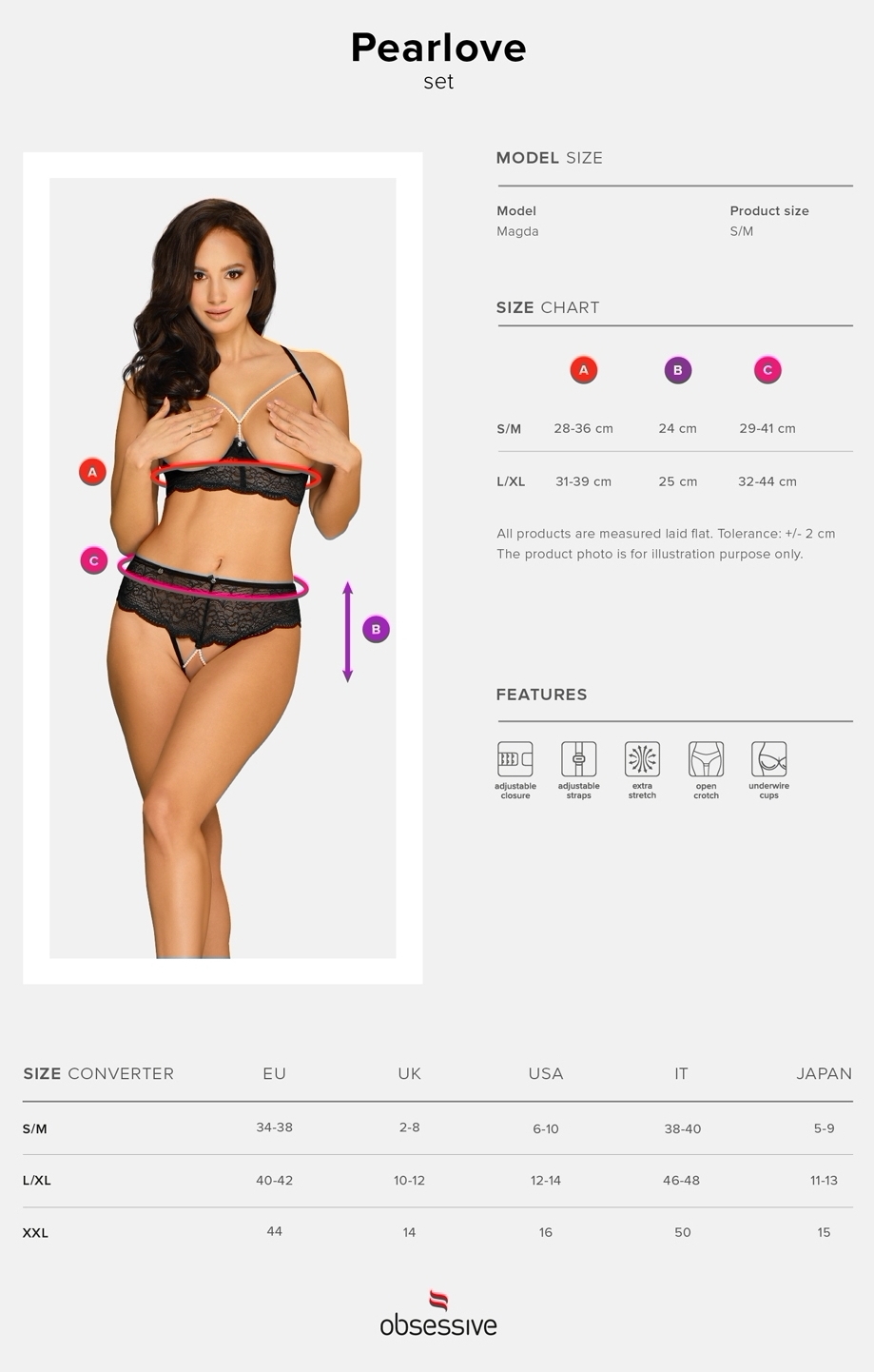 Set Obsessive Pearlove închis la culoare este o piesă de lenjerie încântătoare și extraordinar de fascinantă, inventată și concepută de însemnatul brand de lenjerie Obsessive din Polonia. Materialul finit este fabricat dintr-un material flexibil si se potriveste marimilor S si M.