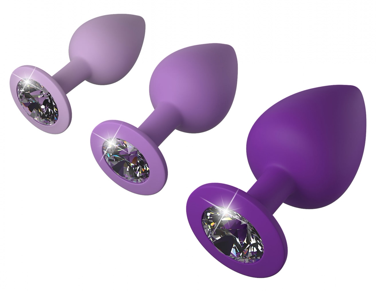 Aceste 3 piese, pe mărimi diferite, din kitul Anal Plug Fantezie Gems sunt realizate pentru confort maxim și satisfacție garantată.