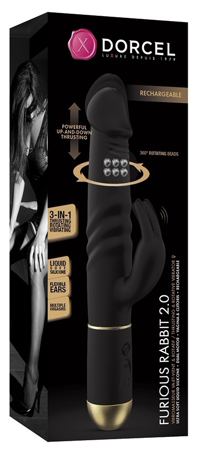 Stimulator Furious Rabbit, este o versiune îmbunătățită a modelului anterior cu un zdravăn motor dublu și un estetică semi-realist. Acest Vibrator Furious Bunny are incluse funcția de împingere și urechile vibrante pentru stimularea clitorisului, dar este dotat și cu mărgele rotative. Vârful său curbat, cu detalii vigilent lucrate, stimulează punctul G, în timp ce urechiușele de iepuraș cu funcție de vibrare întărâtă intens și plăcut clitorisul.