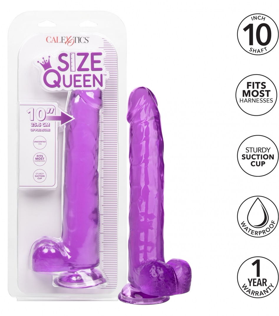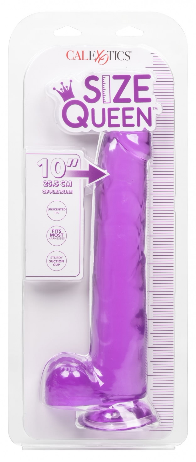 CalExotics Size Queen este o replică realistică construită pentru stabilitate și confort. Lungimea totală de 30,5 cm și inserabilul de 25,5 cm o fac compatibilă cu majoritatea hamurilor folosite în pereche. Materialul TPR acordă o senzație naturală, în timp ce finisajul vigilent păstrează detalii realiste.