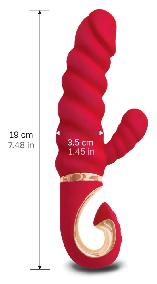 Trunchiul mai mare al jucăriei a fost creat pentru stimularea vaginală, în timp ce degetul mai mic este ideal pentru stârnirea externă a clitorisului.