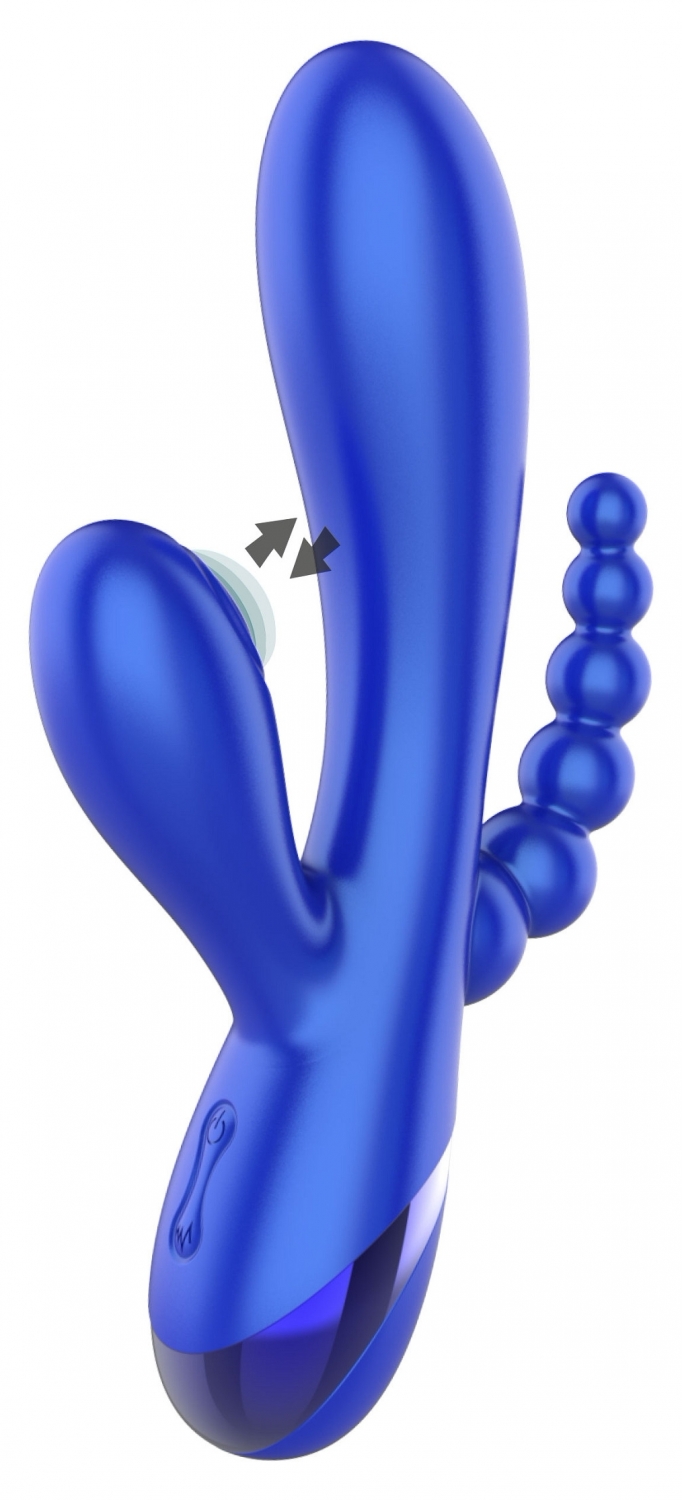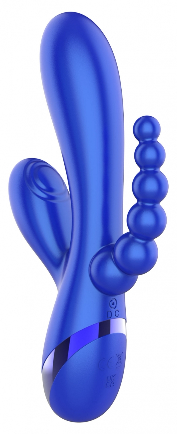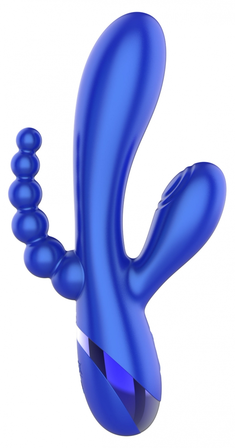 Triple Love Vibrator Albastru este un dispozitiv multifuncțional, creat pentru a dărui trăiri variate și intense. Acesta integrează funcții avansate, cum ar fi vibrații ritmice pentru stârnire precisă și mărgele din silicon catifelat, gândite pentru un plus de confort și adaptabilitate.