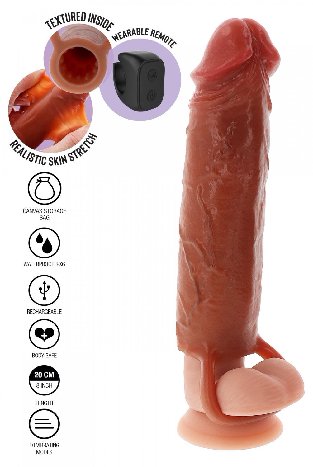 Descriere Hydrated Skin Penis Silicone Sleeve Vibrating 20 cm Natural: