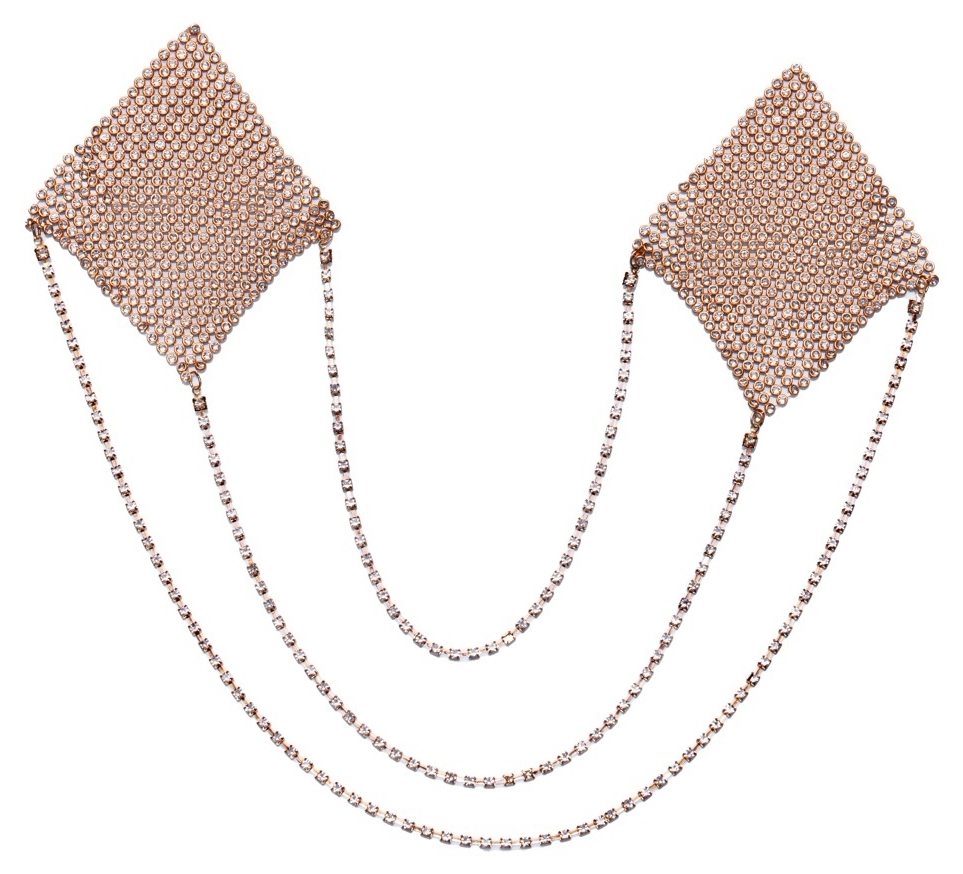 Descoperiți rafinamentul și eleganța cu Nipple Stickers Square de la Cottelli, o alegere ideală pentru cei care apreciază detaliile fine. Aceste podoabe strălucitoare, în nuanțe aurii, sunt confecționate din forme geometrice inspirate de diamante, care captează lumina și atrag privirile cu fiecare mișcare. Fiecare sticker are un design sofisticat, dublat de trei lanțuri delicate care adaugă un plus de dinamism aspectului general.