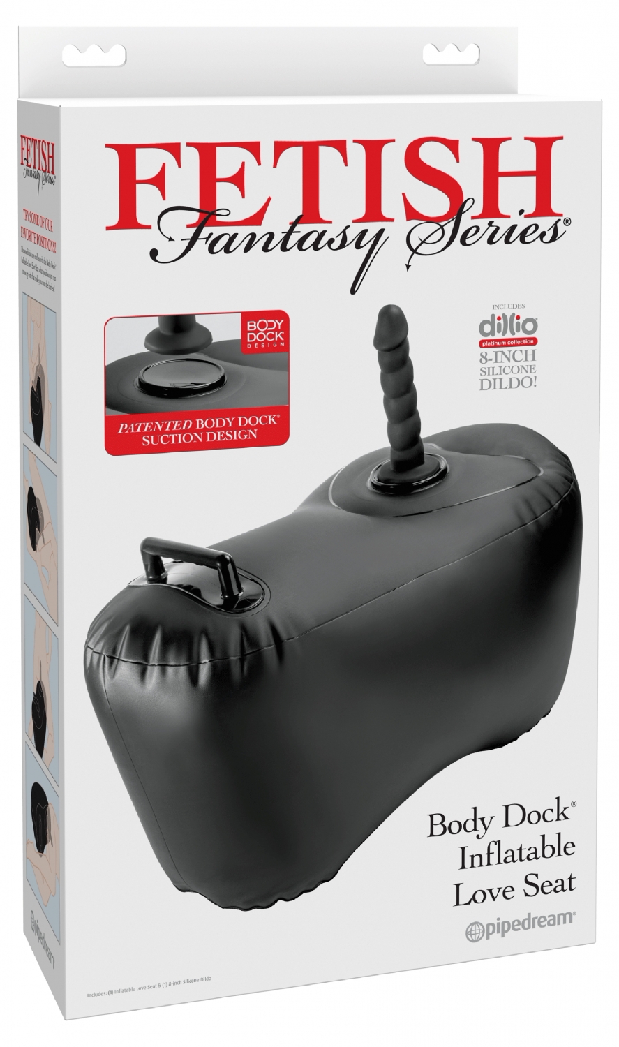 Setul conține un accesoriu din silicon de 20,3 cm și o plăcuță cu ventuză (diametru plăcuță 8,64 cm) cu estetică patentat Body Dock, care facilitează atașarea majorității accesoriilor cu ventuză disponibile pe piață.