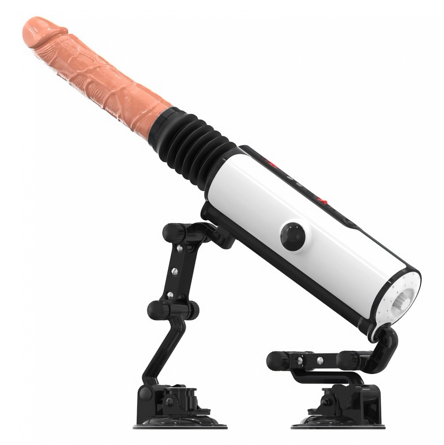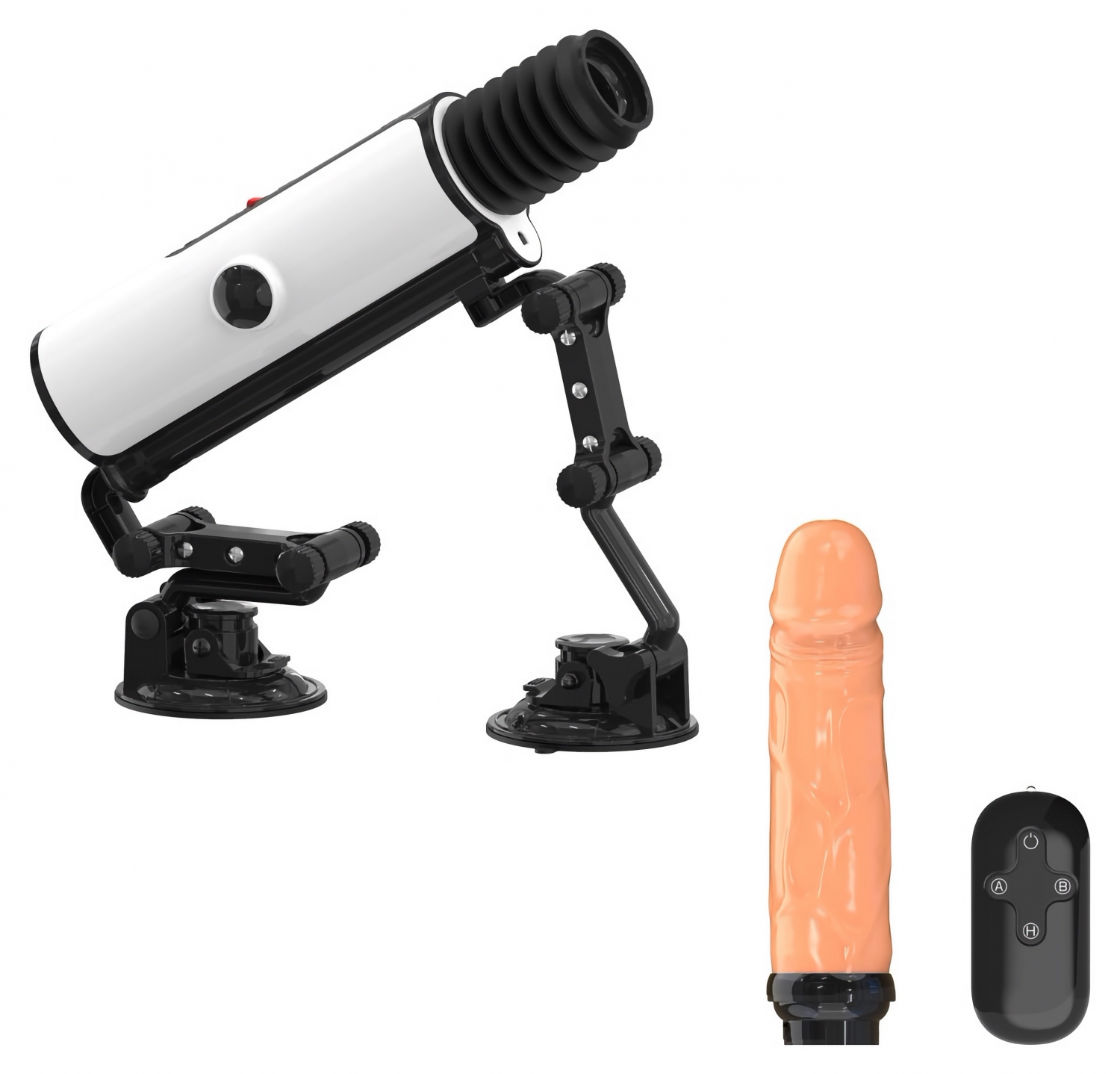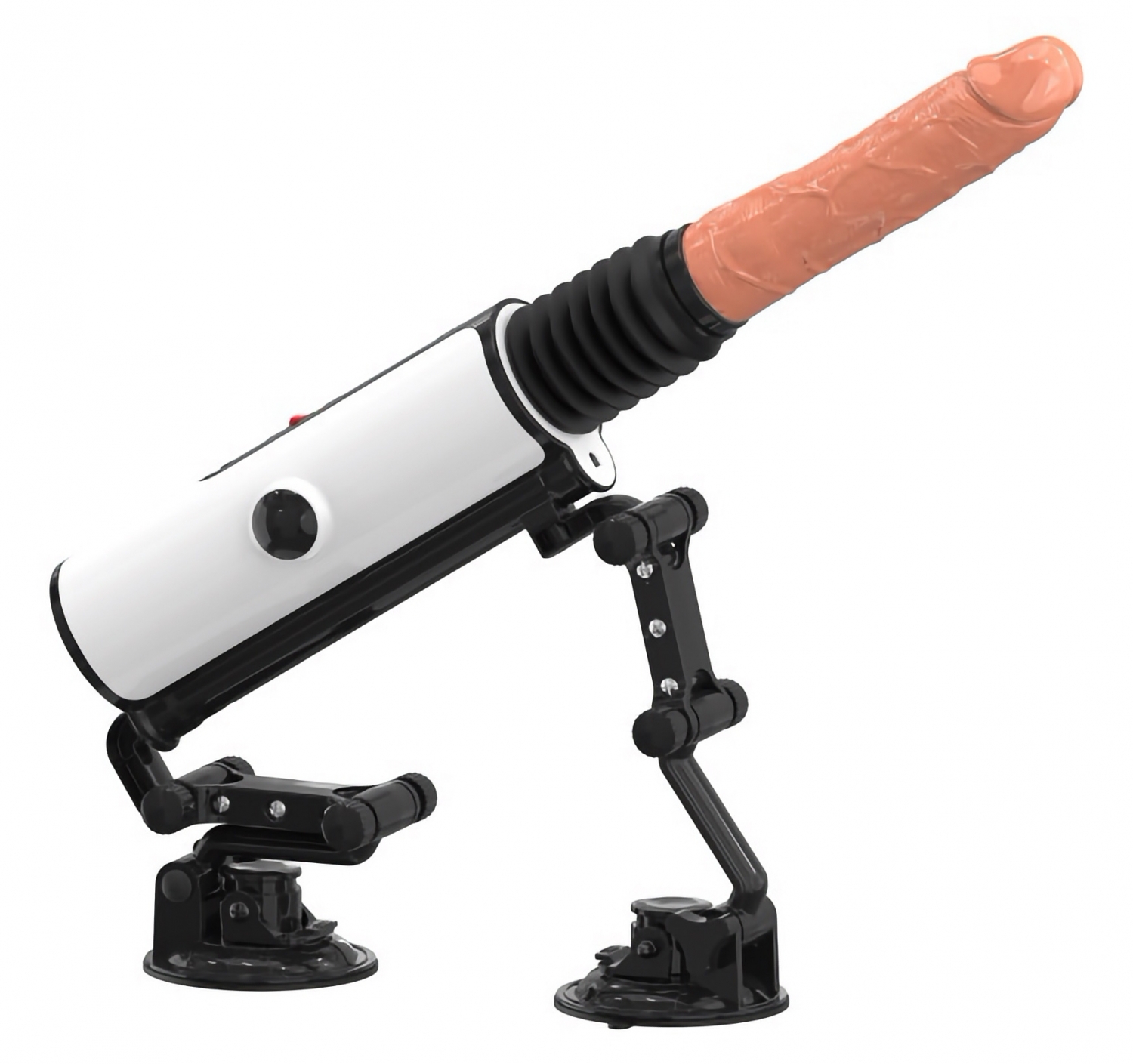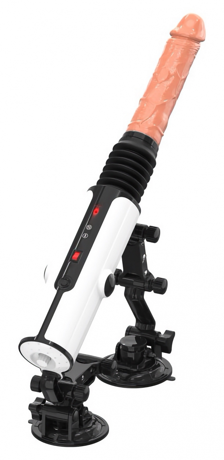 Mașina de stimulare Mistress oferă un colet complet pentru utilizare controlată și stabilă. Designul îngăduie conectarea prin adaptor, montarea pe suprafețe plane cu ajutorul ventuzei robuste și control facil prin telecomanda wireless cu rază de până la 10 metri.