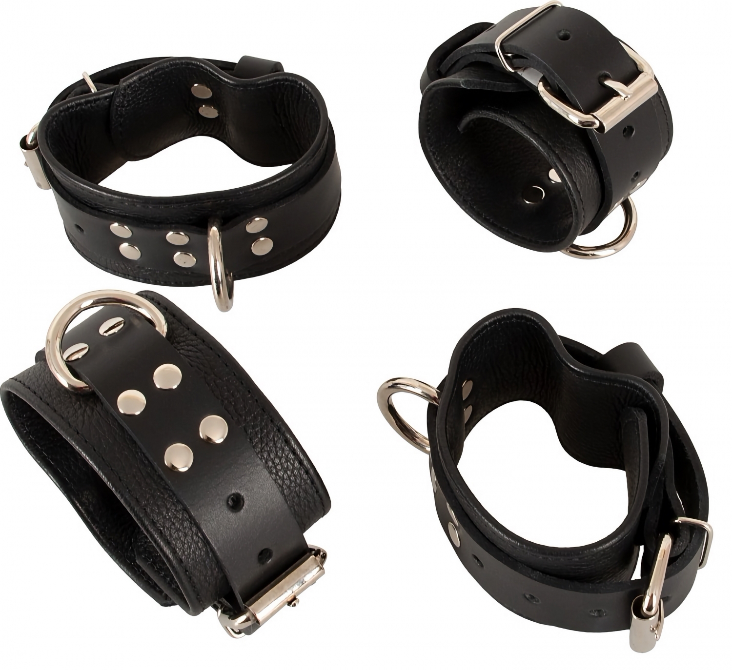 - Cătușe din tegument naturală, robuste și reglabile cu catarame