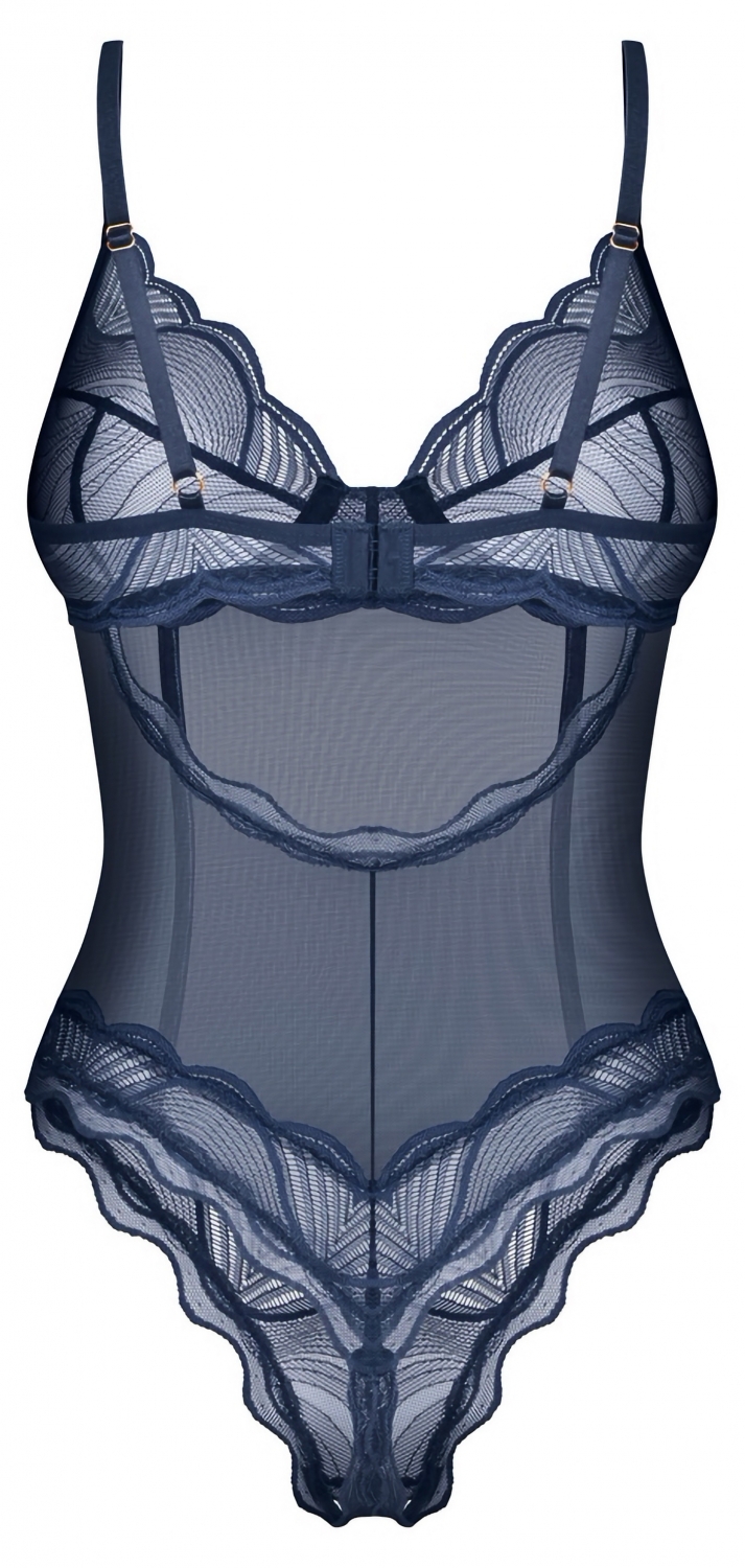 Nightly Blue de la Obsessive este un body transparent, tăiat inghinal, conceput pentru un look discret și rafinat. Materialul moale și extensibil urmărește linia corpului, dând confort și libertate de mișcare.