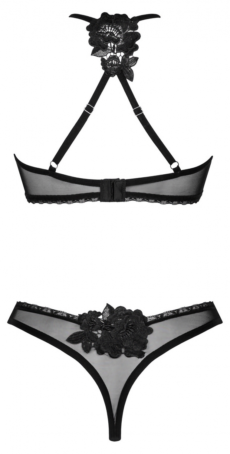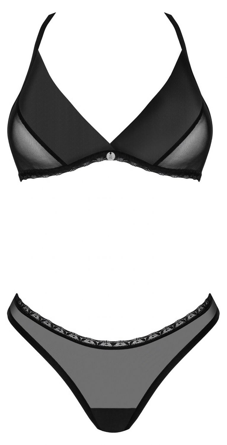 Setul Latinesa de la Obsessive îmbină eleganța discretă cu confortul. Concretizat din tulle moale și elastic, cu secțiuni parțial opace, oferă o siluetă rafinată și o senzație lejeră la purtare.