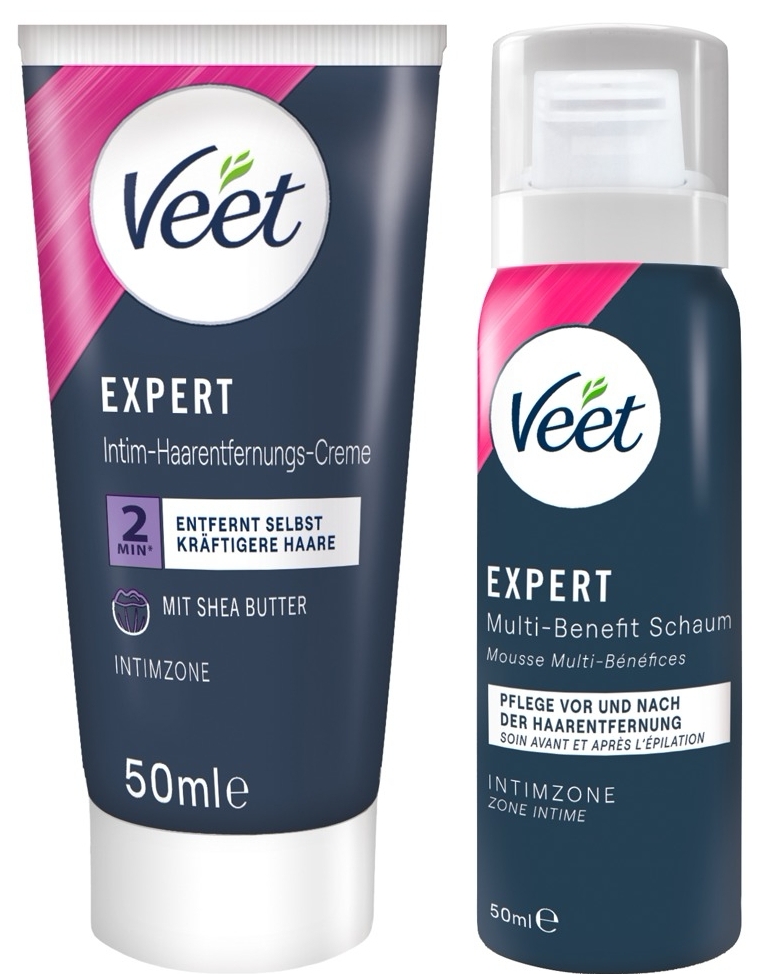 Descriere Veet EXPERT Set Epilare Intimă Cremă și Spumă: