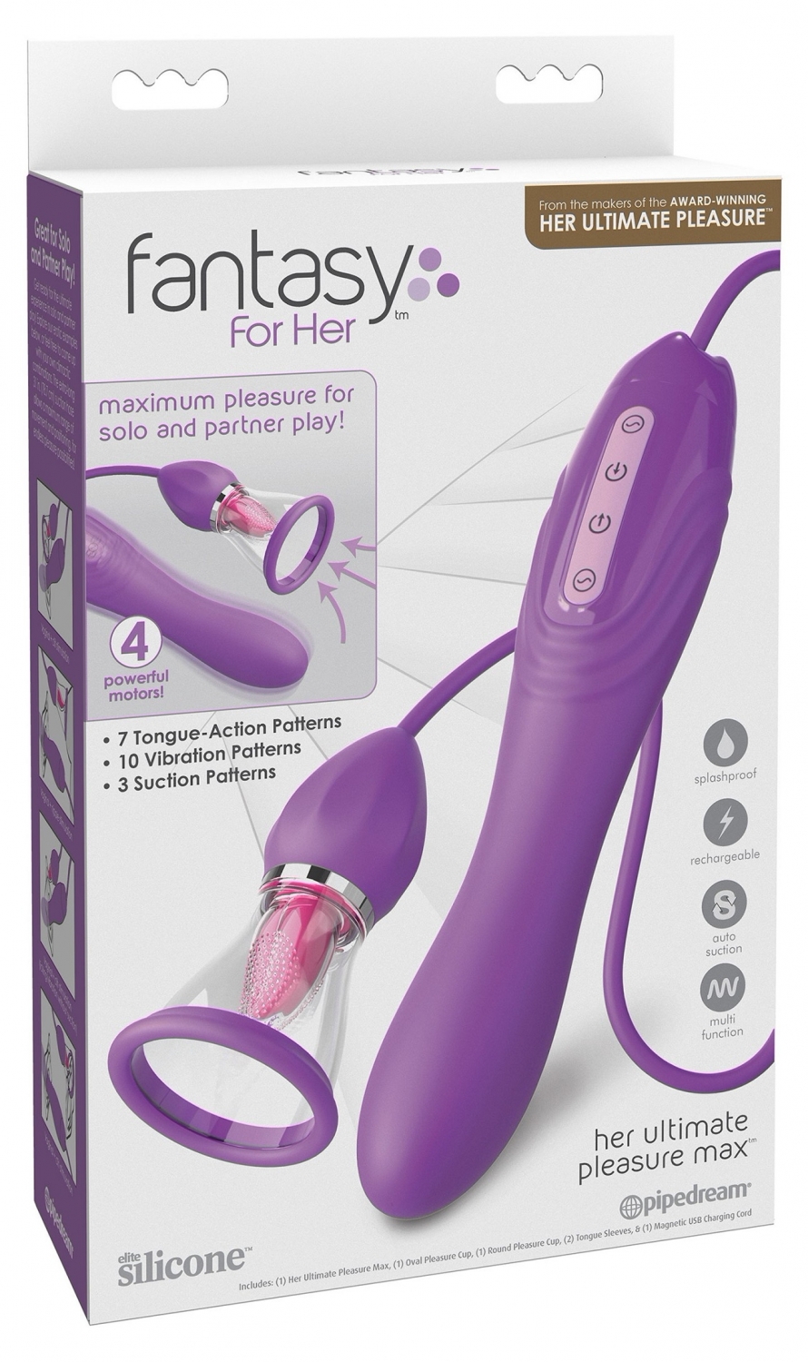 Ultimate Pleasure Max îmbină patru funcţii într-un design adaptat corpului pentru stârnire externă precisă şi vibraţii puternice din mâner. Mânerul mătăsos poate fi folosit ca vibrator, iar tubul de pompare extra-lung (78.7 cm) furnizează libertate de mişcare pentru utilizare solo sau în cuplu.