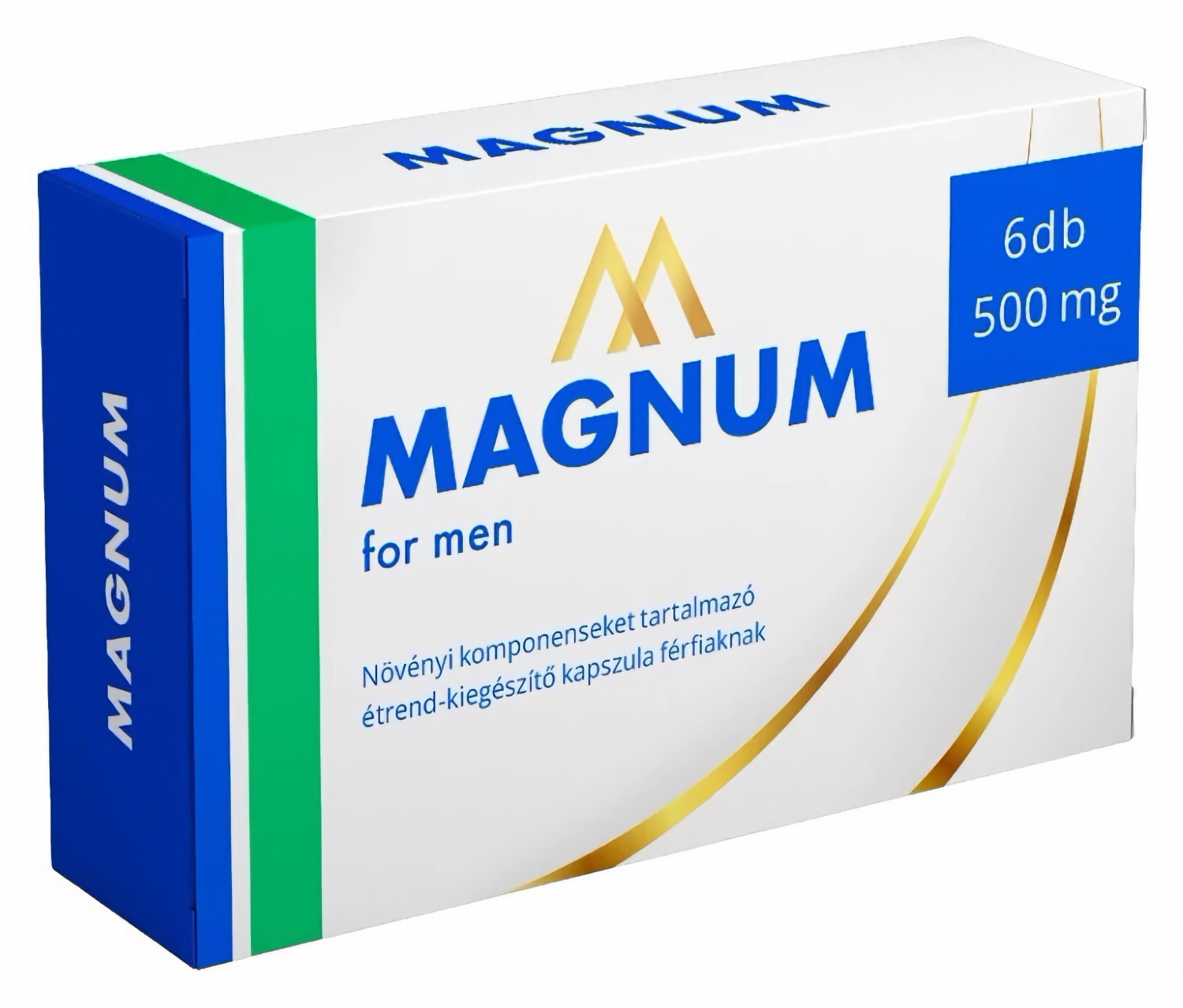 MAGNUM pentru bărbați este un adaos alimentar pe bază de plante, destinat completării unei rutine sănătoase. Fiecare cutie conține 6 capsule, 500 mg fiecare, ambalate pentru păstrare ușoară.