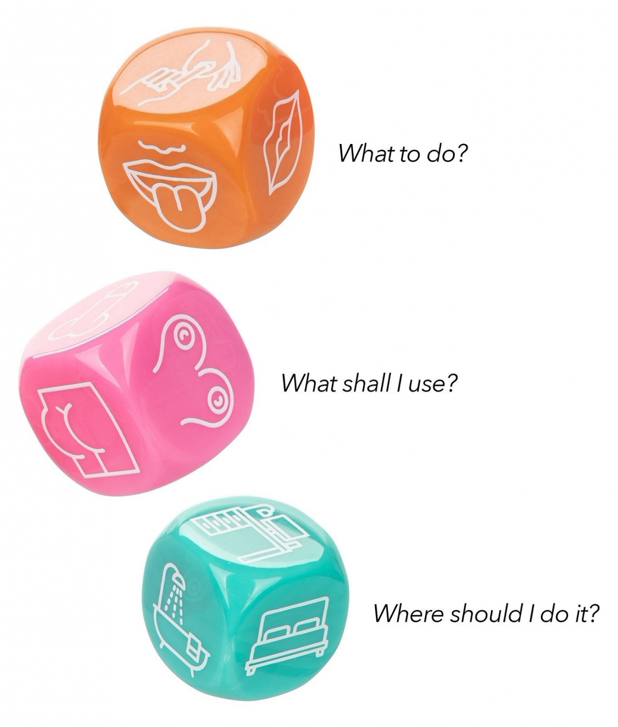 Cum se folosește: aruncați cele 3 zaruri și urmați indicațiile afișate. Produs destinat doar adulților; folosiți întotdeauna cu respect și consimțământ.
