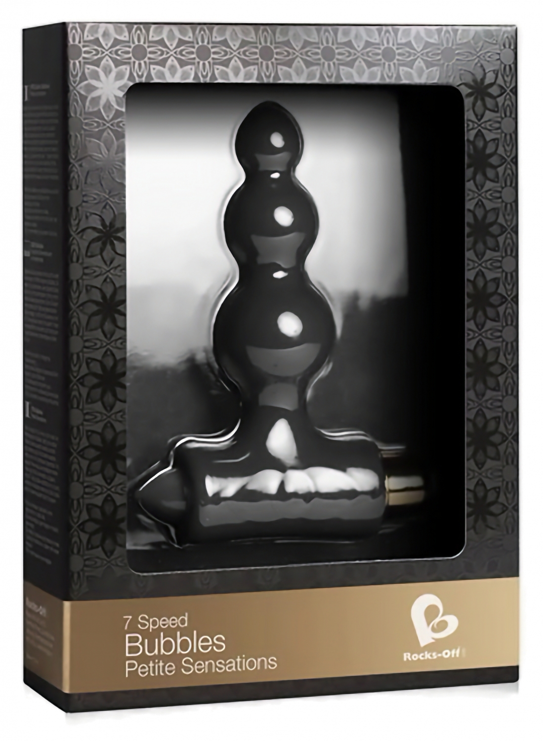 Descoperă o abordare fină a stimulării anale cu Bubbles Negru de la Rocks-Off. Forma cu trei bulgări îngăduie o inserţie graduală şi confortabilă, conformă pentru cei care încep explorarea. Siliconul ultra-moale este plăcut la mângâiere şi se întreţine uşor.