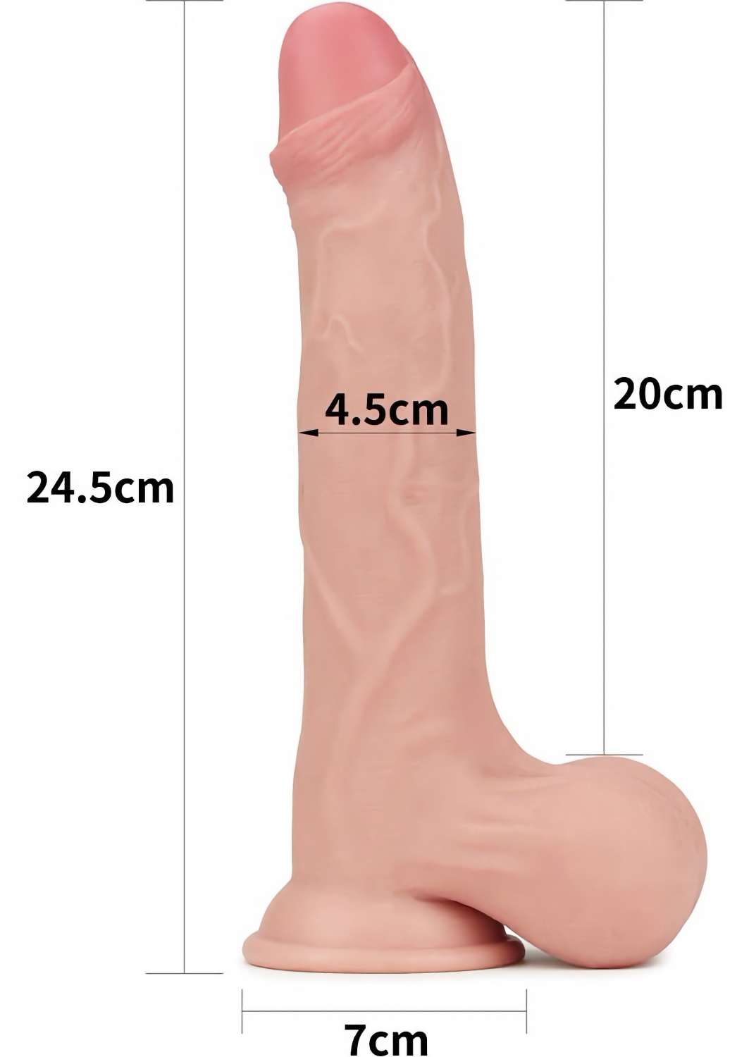 Descriere Lovetoy 24.5cm Sliding Skin – Dong Realist cu Testicule: