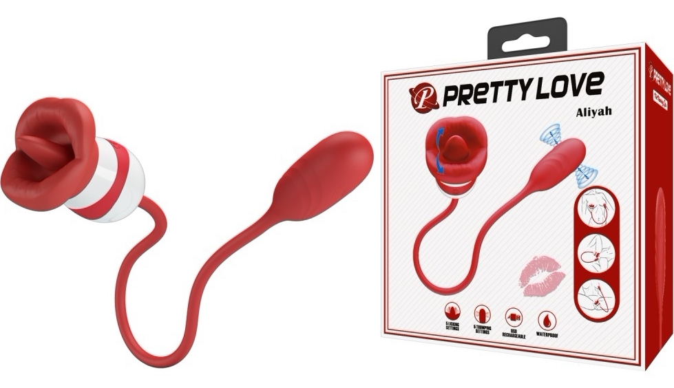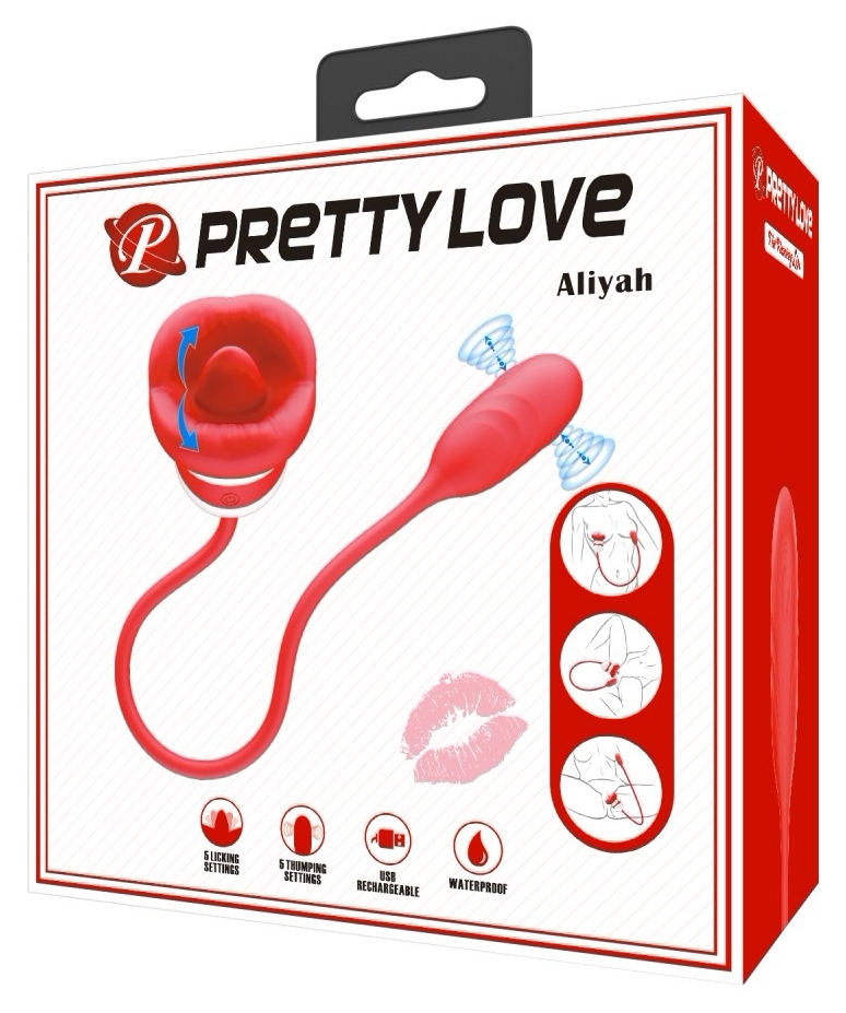 Pretty Love Aliyah comasează două maniere de stârnire într-un design compact inspirat din mișcarea buzelor. Un capăt imită lingearea delicată, iar celălalt transmite pulsații puternice pentru o senzație complementară și intensă.