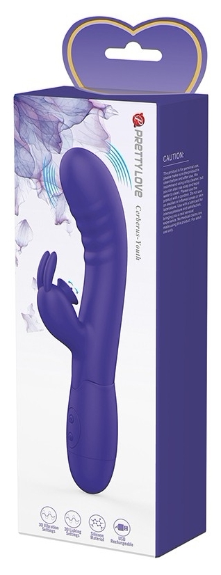 Pretty Love Cerberus Youth este un vibrator tip rabbit, plămădit pentru stimulare multiplă și reglaje fine. Capul curbat țintește punctul G, iar brațul mic tip bunny oferă contact direct și precis cu clitorisul. Dispune de 30 de funcții de vibrație pentru a adapta puterea după preferințe.