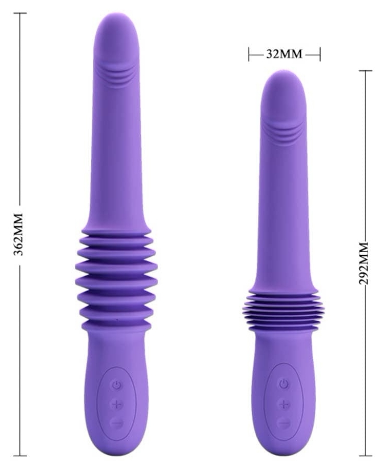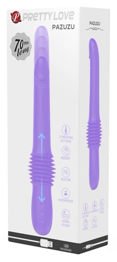 Pretty Love Pazuzu Purple este un vibrator plămădit pentru control și manevrabilitate. Mecanismul de pistonare transmite o deplasare în față-înapoi cu extensie de până la 7 cm, reglabilă în 3 moduri. Forma ergonomică și mânerul bine proporționat garantează o prindere stabilă.