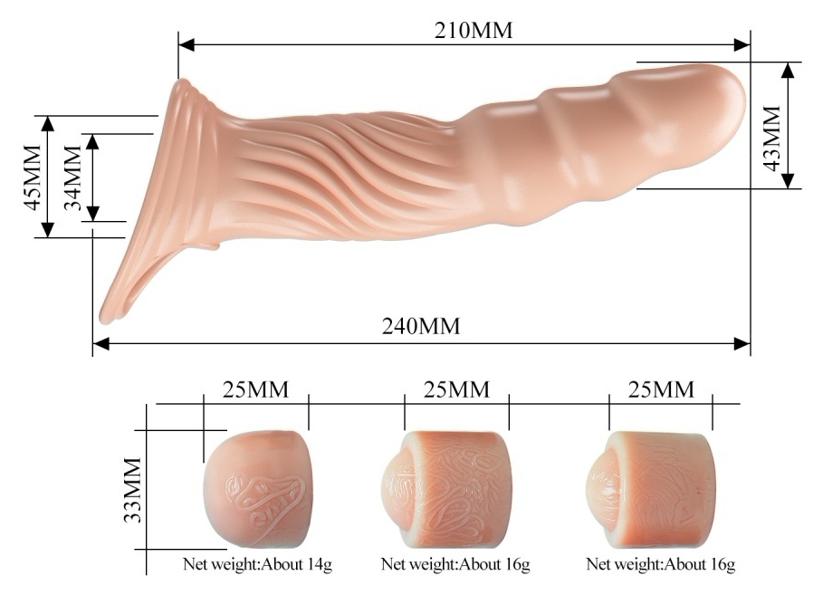 Extensie peniană din TPE, realizată pentru un înfățișare și o senzație cât mai apropiate de realitate. Textura cu vene și capul pronunțat furnizează un alură natural, iar materialul moale păstrează luxul în utilizare.