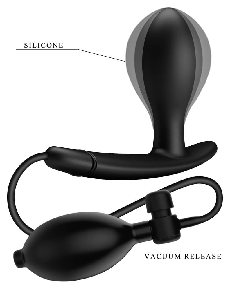 Dop anal gonflabil Pretty Love Drake, creat pentru umflare controlată cu susținerea unei pompe manuale integrate. Introduceți dopul în poziția dorită înainte de a acționa pompa; umflarea se face treptat pentru a regla senzația după preferințe.