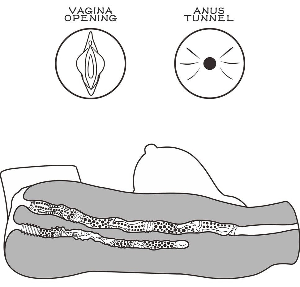 Dispune de două canale distincte: orificiu principal texturat cu microprotuberanțe care stârnește pe parcursul alunecării și un orificiu anal mai strâns, cu curbe interne pentru intensificare. Inserție principală: 9.4.