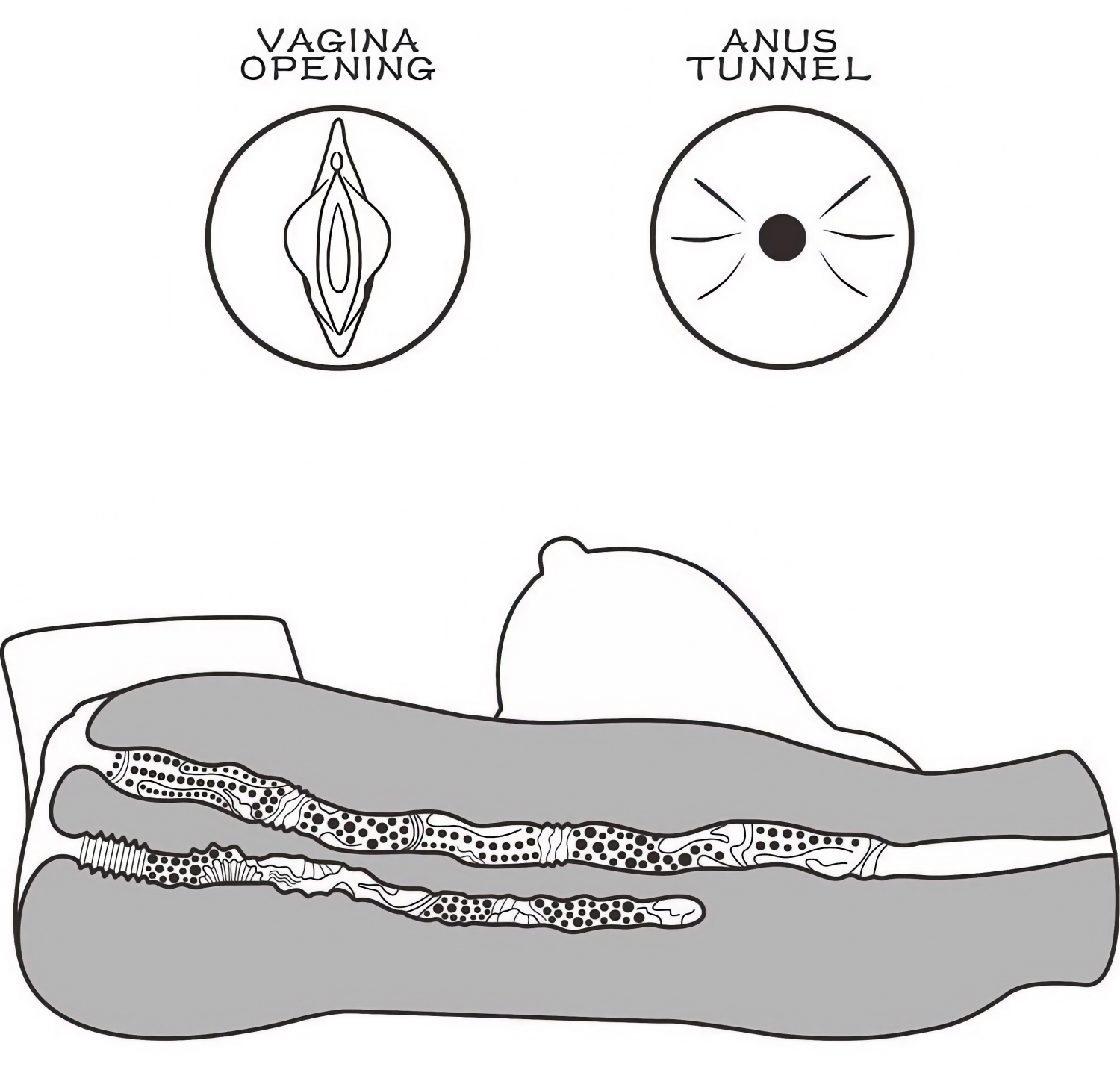 - Dublu canal: orificiu de frunte și orificiu anal pentru senzații diferite
