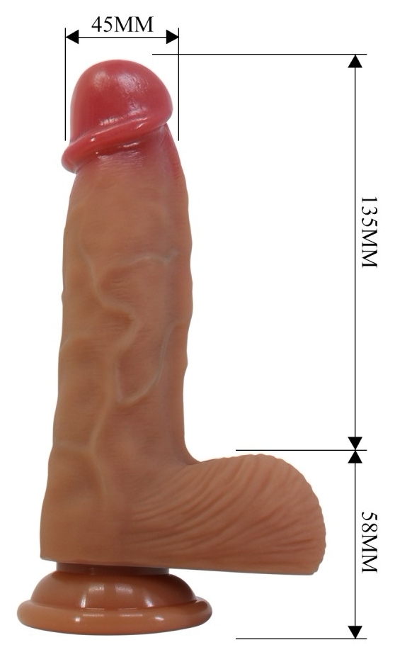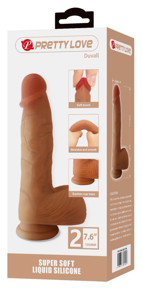 Elastic și modelat realist, Pretty Love Duvall 7.6 este fabricat dintr-un material care imită textura pielii, cu zonă nervurată și testicule pentru un aspect natural. Conține de ventuză pentru fixare pe suprafețe netede și nu are motor, fiind discret și silențios.