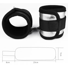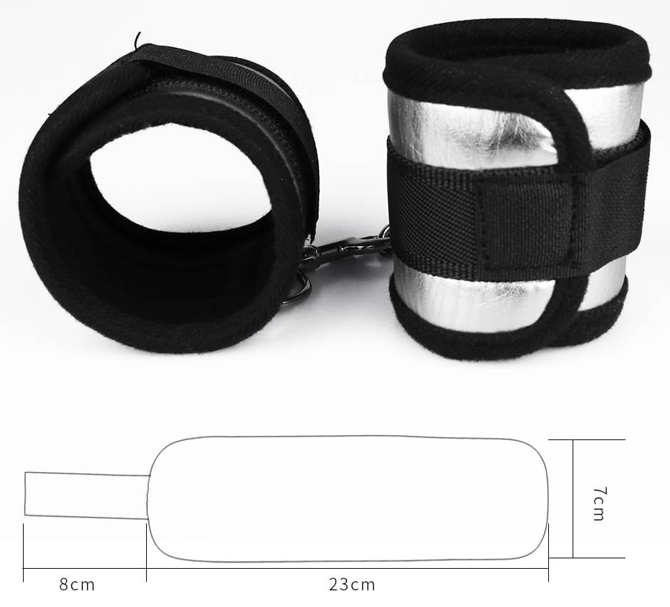 Sistemul de fixare include cingătoare Velcro rezistente și cleme cu eliberare rapidă, care consimt conectarea între manșete sau la alte accesorii cu inele D. Designul ergonomic menține poziția fără a presa excesiv, fiind adecvat pentru utilizatori începători sau pentru cei care vor sesiuni controlate.
