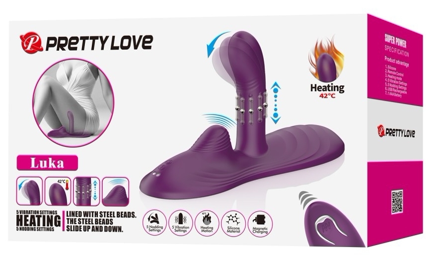 Pad-ul Pretty Love Luka este creat pentru utilizare așezată, combinând un vibrator central cu un stimulator clitoridian integrat în pernuța neted din silicon. Designul pad-ului eliberează presiunea de pe mâini și permite o poziție relaxată pentru utilizare.