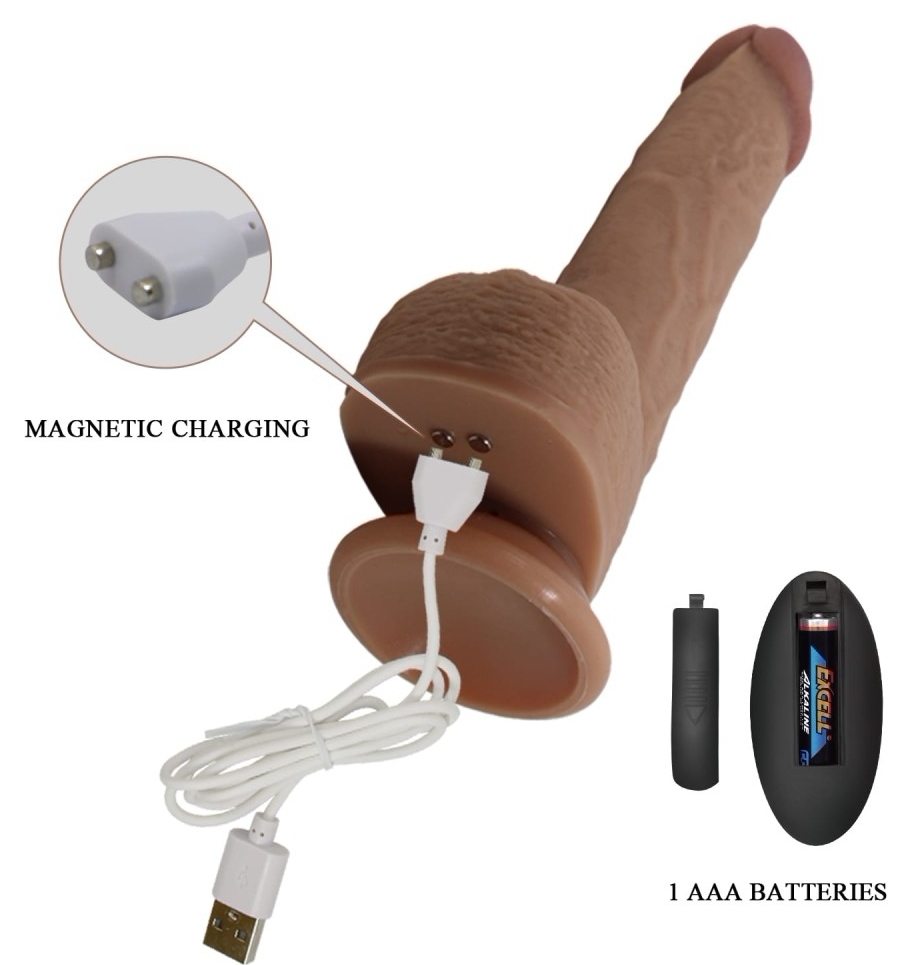 Dispozitivul combină mişcări de împingere sus-jos cu vibraţii puternice: 3 maniere de vibraţie şi 3 feluri de împingere, controlabile independent prin telecomandă, inclusiv de către un partener. Încărcarea se face simplu, prin port magnetic la bază.