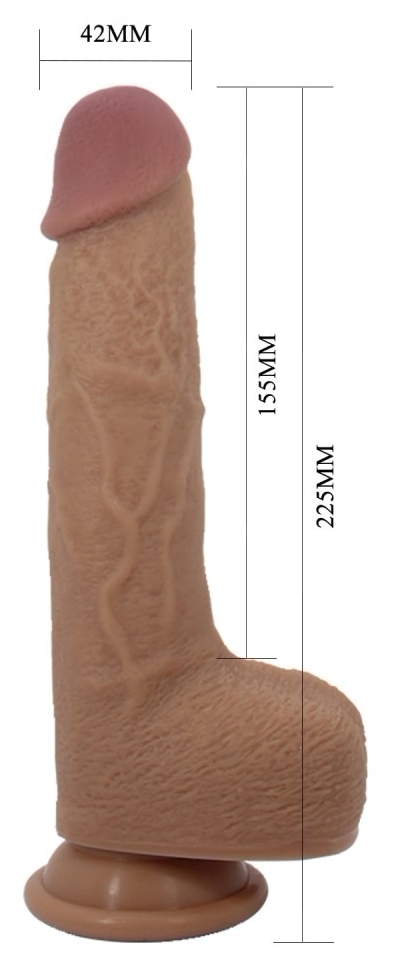 Forma detaliată cu gland, vene şi testicule imită contururile naturale, iar siliconul mătăsos este agreabil la atingere. Ventuza robustă îngăduie fixarea pe suprafeţe netede pentru utilizare minus mâini.
