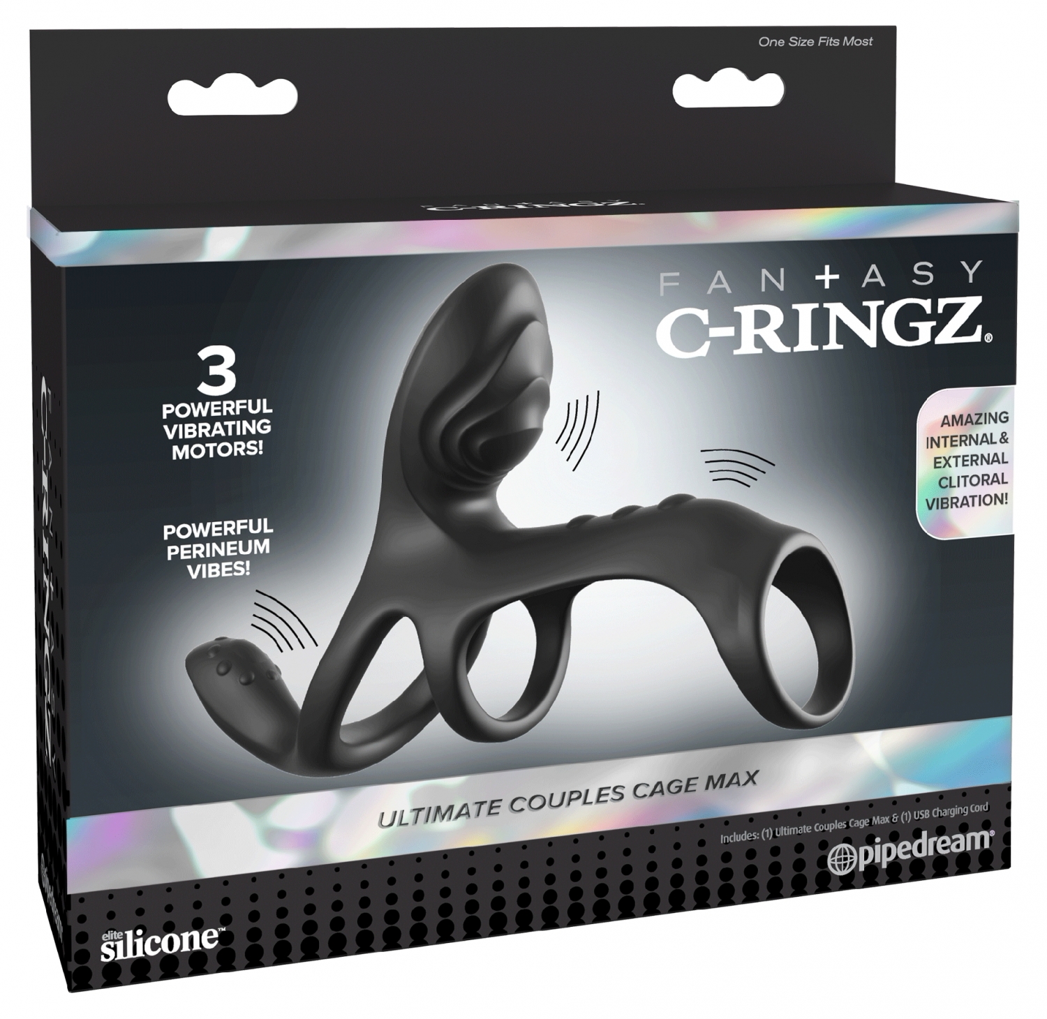 Ultimate Couples Cage Max de la Pipedream este un inel de susținere de lux cu trei motoare, proiectat pentru a sincroniza stimularea ambilor parteneri. Combinația de stimulator dual clitoridian, motor pentru perineu și mânecuță texturată le acordă ambilor parteneri emoții complementare.