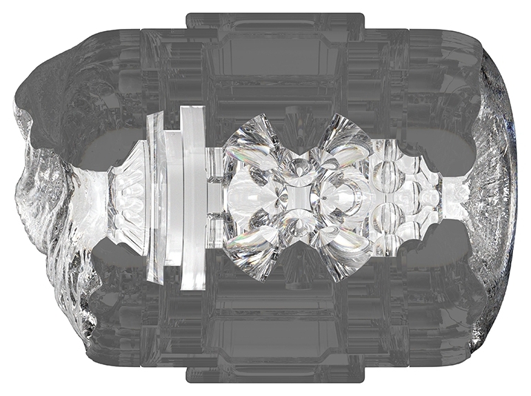 Are două deschideri modelate după înfățișări autentice, pentru opțiuni deosebite de stimulare, iar designul deschis nu blochează fluxul. Capacele la cele două capete asigură depozitare igienică.