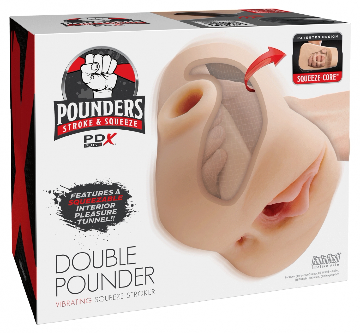 Colecţia Pounders asigură un estetică inovator şi detalii realiste, concepute pentru un control perfect al presiunii. Datorită tehnologiei patentate Squeeze‑Core, tunelul interior este gol şi comprimat, permiţând o prindere personalizată şi o senzaţie mai intensă comparativ cu materiale dense.