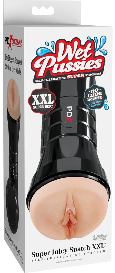 Extra Juicy XXL de la Pipedream Extreme este un masturbator de dimensiuni generoase, plămădit pentru o utilizare agreabilă și o senzație umedă fără lubrifianți suplimentari. Auto-lubrifierea activată cu apă face materialul Fanta-Flesh mai suplu și alunecos, păstrând senzația naturală.