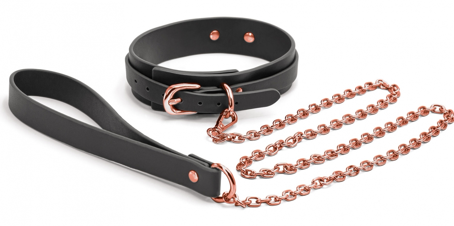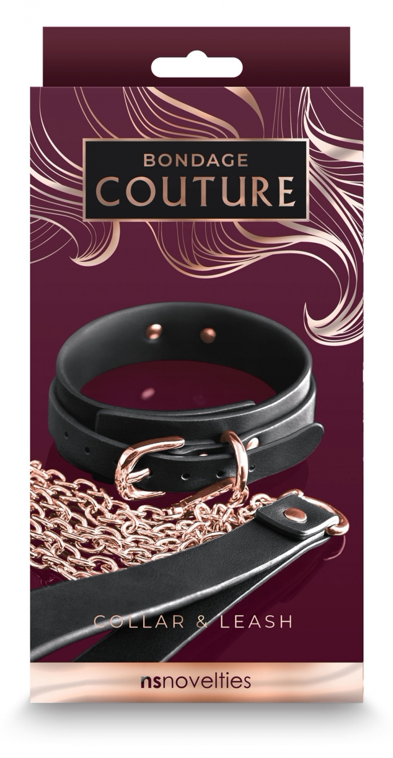 Kitul Bondage Couture de la NS Novelties leagă o zgardă reglabilă și o lesă cu lanț, concepute pentru control discret și aspect îngrijit. Gulerul din imitație de piele se fixează ușor și are un inel D rezistent pentru atașare, iar lesă conferă o prindere sigură.