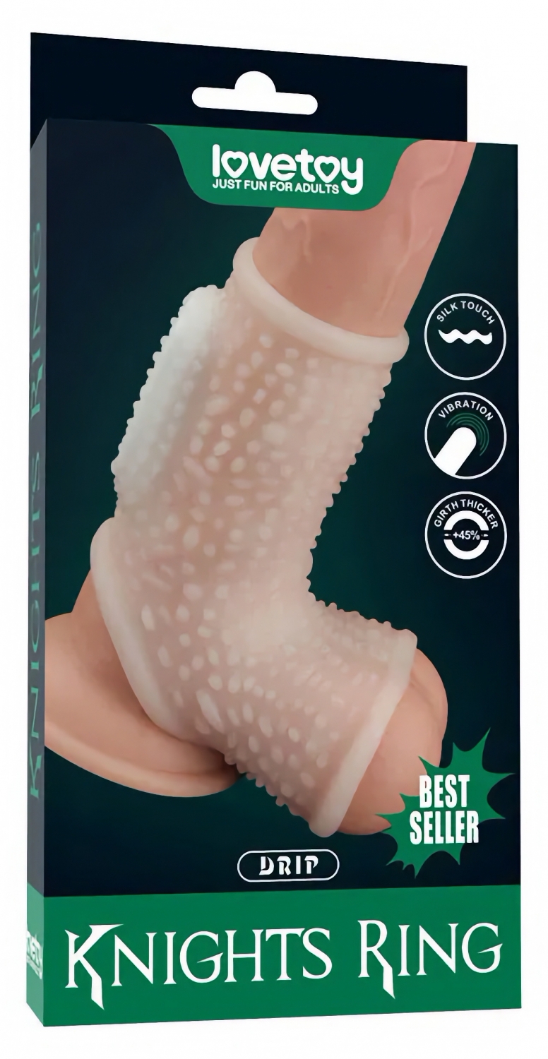 Lovetoy Knights Ring este un inel vibrant cu manșon flexibil, conceput pentru sprijinire suplimentară și confort. Manșonul elastic se mulează pe penis, oferind un plus de volum (până la +45% la circumferință) minus compromisuri la confort.