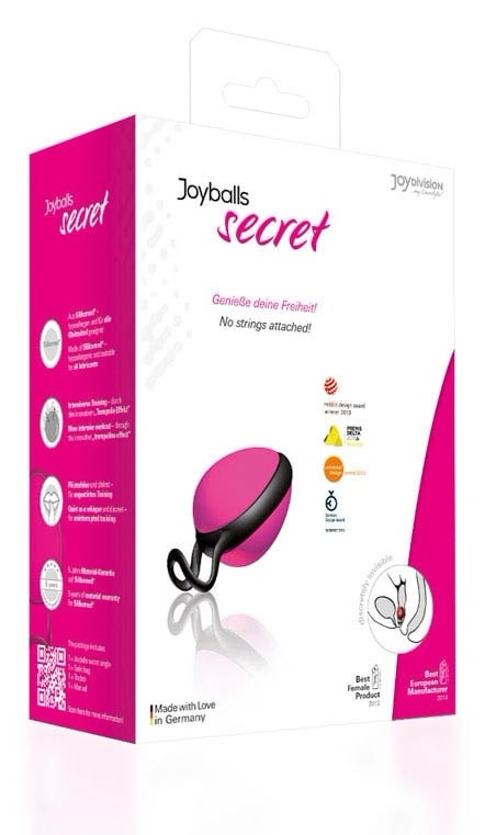 Joyballs Secret Single de la Joydivision este realizată pentru antrenarea discretă a mușchilor pelvieni, oferind confort şi o utilizare invizibilă. Designul adaptat corpului şi tab-ul de retragere brevetat permit purtare discretă şi extragere simplă.