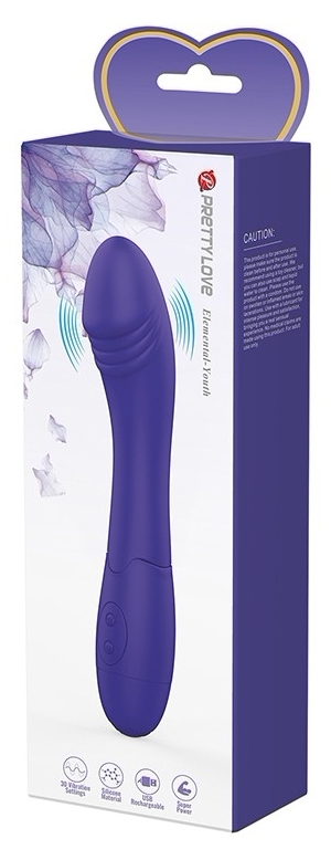 Pretty Love Elemental Youth este un vibrator compact, optimizat pentru stimularea punctului G. Designul arcuit și trunchiul subțire permit contactul directă și controlată a punctului vizat, cu emoții variate oferite de cele 30 de moduri de vibrație.