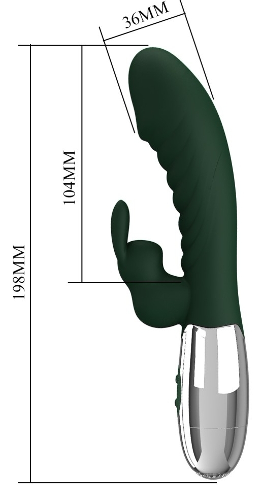 Pretty Love Naughty Bunny Green este un stimulator tip „iepuraș” conceput pentru dublă stimulare: brațul curbat vizează punctul G, iar brațul lateral asigură atingere constant cu clitorisul. Forma compactă și materialele moi oferă o senzație plăcută și o utilizare simplă.
