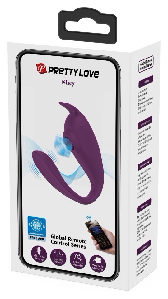Pretty Love Shey este un stimulator compact, proiectat în aspect de C pentru a se adapta normal contururilor corpului și a oferi stabilitate în timpul utilizării. Fiecare braț are rol dedicat: unul pentru stimulare externă (10 setări de pulsații), celălalt pentru stârnire internă la nivelul punctului G (10 moduri de vibrație).