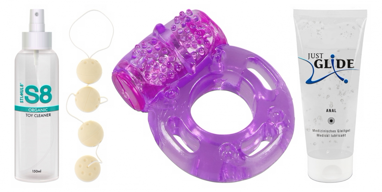 Cum se folosesc împreună: igienizați jucăriile cu spray-ul Stimul8, puneți agent de ungere pe bile și pe inel, începeți cu mângâieri și masaj pentru a relaxa și a crește excitarea. Bilele pot fi purtate în preludiu pentru senzații subtile, apoi inelul se activează pentru atingere direct în timpul actului. Lubrifiantul anal se utilizează acolo unde doriți o explorare mai profundă, garantând confort și siguranță.