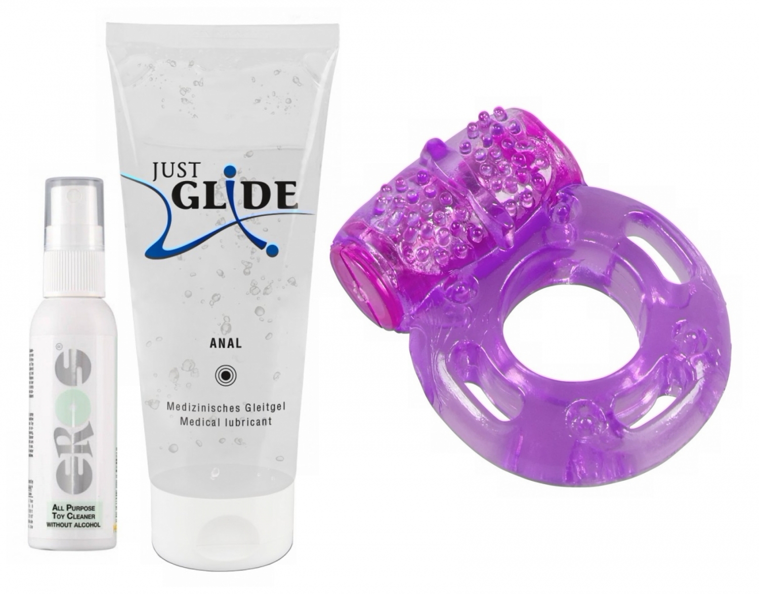 Porniți prin a igieniza jucăriile şi suprafețele cu spray-ul excluzând alcool — este delicat cu materialele și conferă protecție rapidă. Aplicați lubrifiantul generos acolo unde vreți alunecare și confort (ideal pentru plăceri anale din pricina formulei vâscoase și pH-ului optim). Așezați inelul la baza falusului pentru susținere și porniți vibrațiile; stimularea de clitoris și textura punctată vor amplifica desfătarea ambelor părți. La final, purificați totul din nou cu spray-ul pentru a păstra obiectele în stare impecabilă.