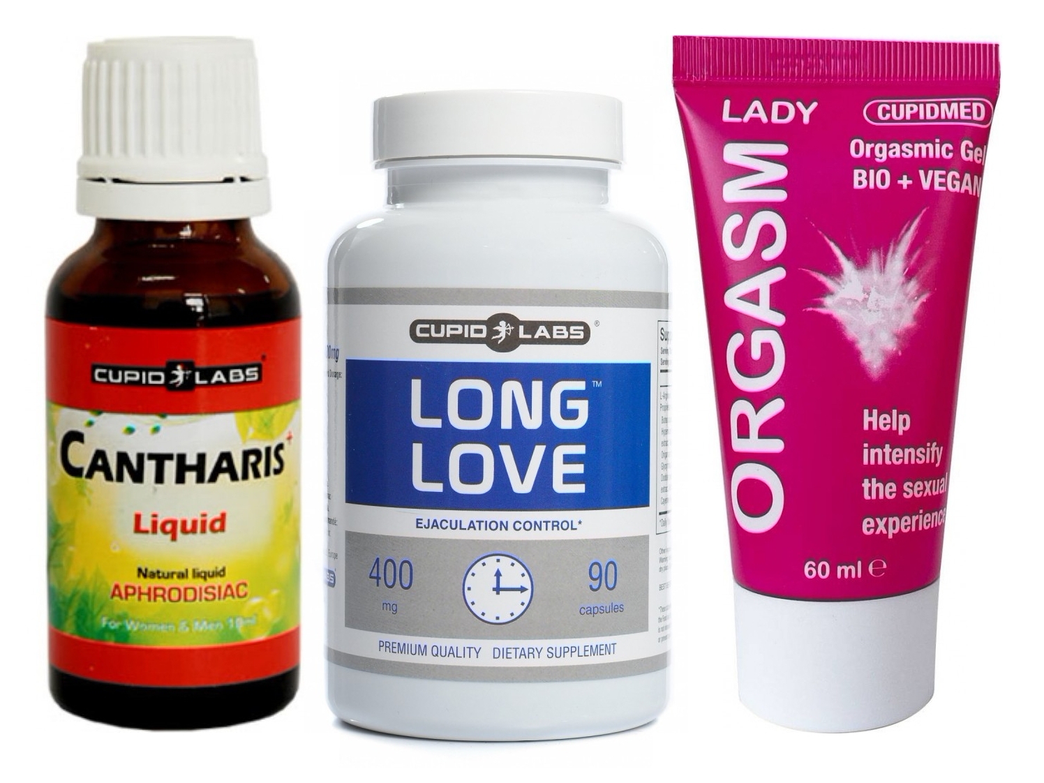 Detalii și avantaje ale fiecărui produs: capsulele (90 capsule) cuprind extracte vegetale care susțin prelungirea acțiunii și încrederea; gelul (60 ml) este hipoalergenic, fără parfum, cu textură agreabilă ce amplifică sensibilitatea; picăturile (20 ml) sunt pe bază de plante și transmite o energie seducătoare, cu administrare rapidă și urmare perceptibil în scurt timp.