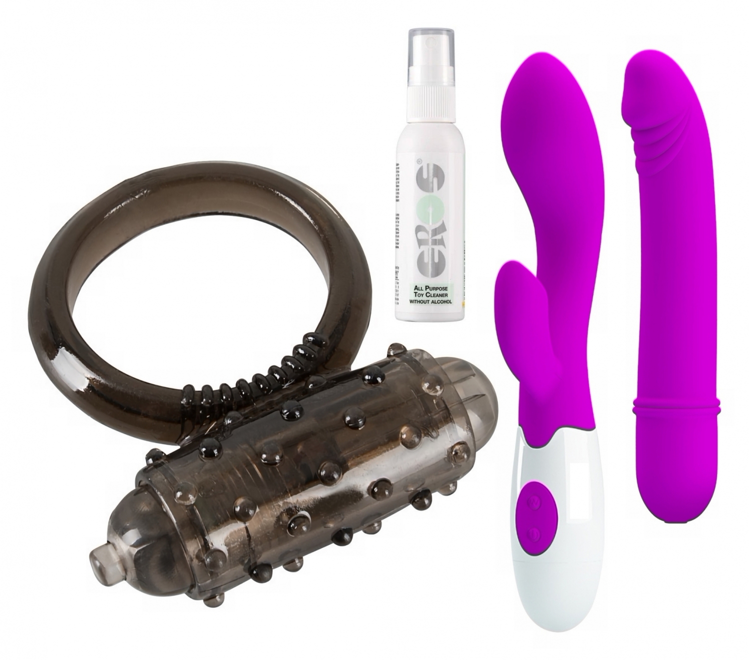Acest set a fost gândit pentru cupluri care vor efecte rapide și emoții variate. Începeți cu un masaj blând pentru a destinde și a sporește excitarea, puneți spray-ul delicat pentru îngrijire înainte de folosire, apoi folosiți inelul pentru a menține o sculare mai umplută în timp ce vibratoarele se ocupă de stârnirea ei.