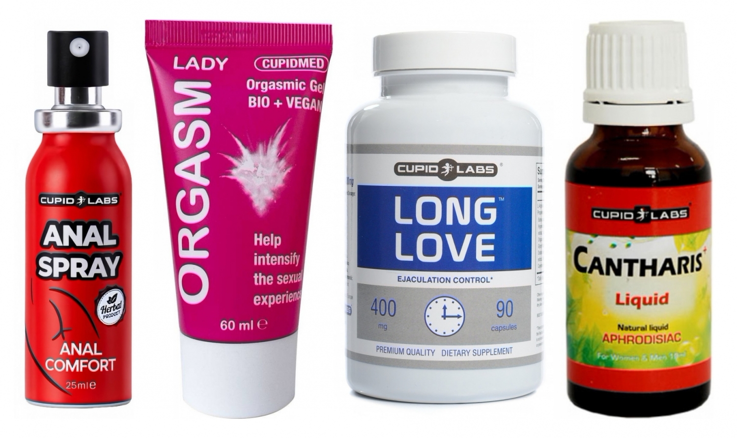 Cum să le folosiți împreună: preluați capsulele Long Love regulat (1 dimineața + 1 seara, conform instrucțiunilor de pe flacon) pentru a stabiliza controlul și a sporește rezistența pe termen scurt și mediu. Cu aproximativ 30 de minute cândva de contact, administrați Cantharis Plus (10–15 picături în băutură sau sub limbă) pentru a amplifica dorința și energia. Aplică gelul Orgasm Lady pe zonele sensibile feminine cu câteva minute înainte pentru senzații de încălzire și furnicături care sporesc plăcerea. Dacă planificați sex anal, pulverizați ușor spray-ul desensibilizator pe exteriorul zonei anale cu puțin timp înainte, pentru o relaxare mai ușoară și o intrare mai confortabilă.
