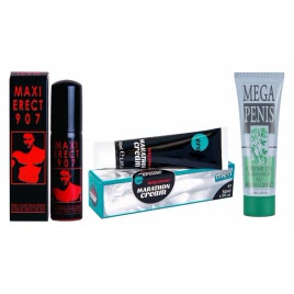Sprayul acordă un start rapid: pulverizezi ușor pe membru câteva minute cândva de contact pentru fermitate imediată și o senzație atrăgătoare de încălzire. Crema Marathon se aplică local cu masaj ușor înainte de act pentru a întinde durata și a atenuează riscul ejaculării premature. Crema Mega se folosește regulat (aplicări zilnice) pentru a stimula circulația și a îmbunătăți volumul și textura pe termen mai lung. Combinația dă control pentru timpul intimității și susține schimbări vizibile în timp.