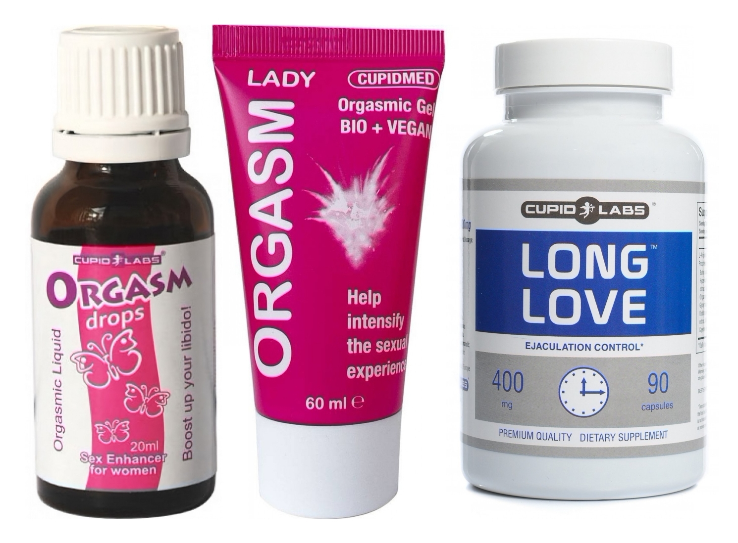Combinația perfectă: începeți cu un masaj relaxant folosind gelul pentru a crea conexiune; picăturile pot fi luate înainte de preludiu pentru a amplifica răspunsul erotic; rezultatul este o sincronizare mai bună între parteneri, finalizată de o performanță mai îndelungă din partea lui. Articolele se completează: Long Love aduce stabilitate și control, Orgasm Lady sporește sensibilitatea, iar Exuberant Drops reactivează libidoul.