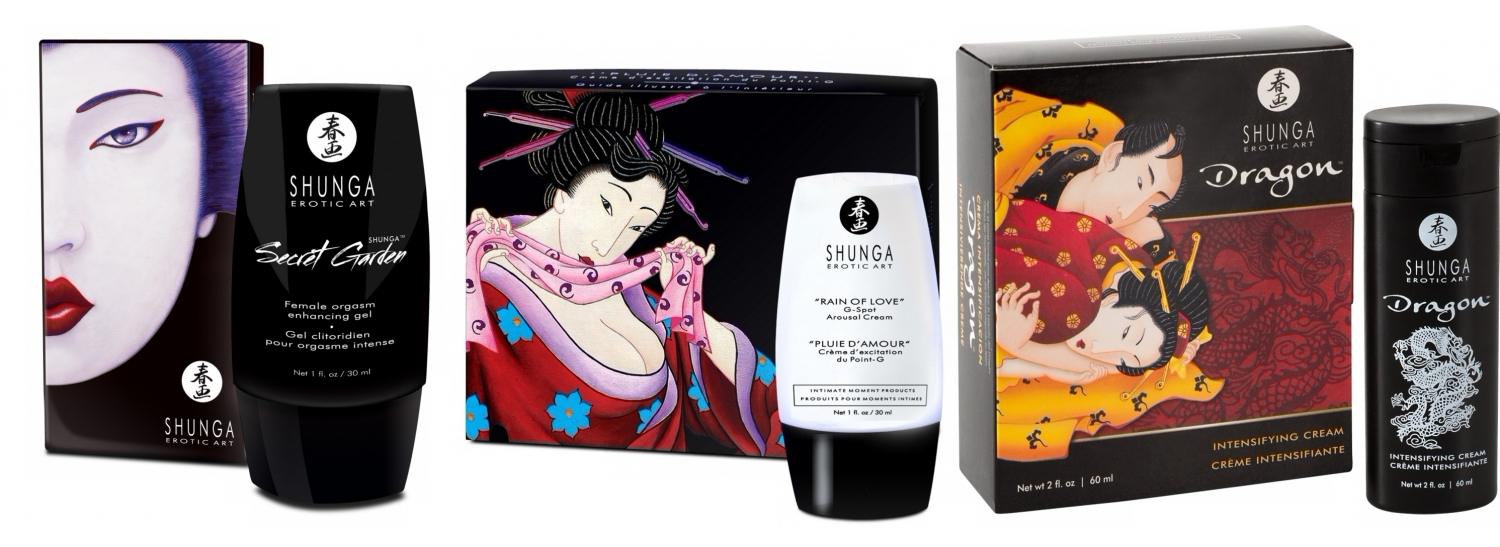 - Secretul Clitorisului (30 ml): cremă de lux pentru surescitarea externă, o cantitate mică e suficientă pentru a intensifica orgasmul și lubrifierea; transmite urmări de încălzire și răcorire, este pe bază de apă și compatibilă cu latexul; cam 30 de aplicații per flacon.